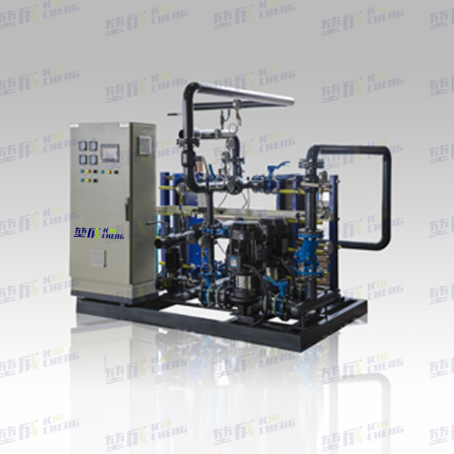 換熱機(jī)組是一套組裝在機(jī)架上的熱交換組合裝置,包括板式換熱器、循環(huán)泵、補(bǔ)水泵、變頻器、測(cè)量調(diào)節(jié)與自動(dòng)控制元件和必備的管閥附件、壓力表、溫度計(jì)等。機(jī)組占地面積小、連接緊湊、便于安裝、操作和維修,同時(shí)考慮了運(yùn)輸、就位的方便。