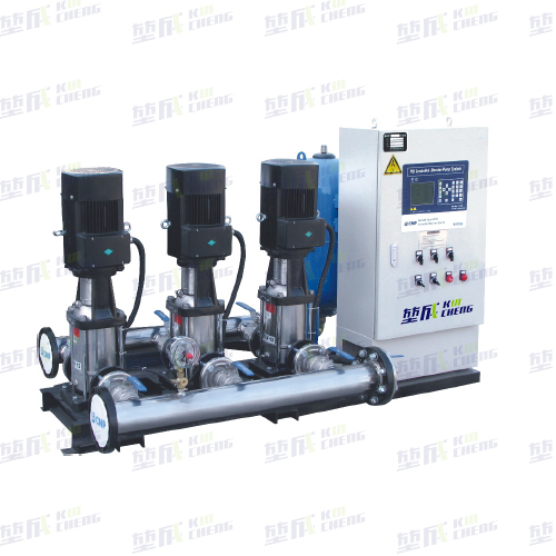 供水主泵組主要由KCCDL型立式多級泵和以槽鋼和鋼板焊接制成的鋼制基礎(chǔ)組成,一般由2-3臺同一型號水泵組成。